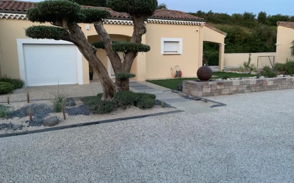 Béton désactivé / Jardinière Bi-muro / Terrain de pétanque / fontaine / Massif